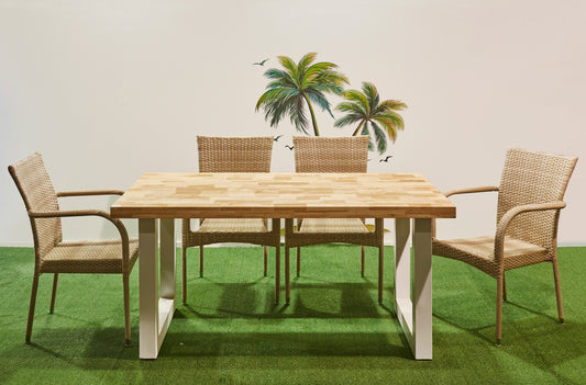Mesa para Exterior o Terraza 160x100cm color madera Nordish y patas Blancas